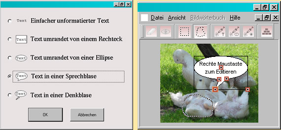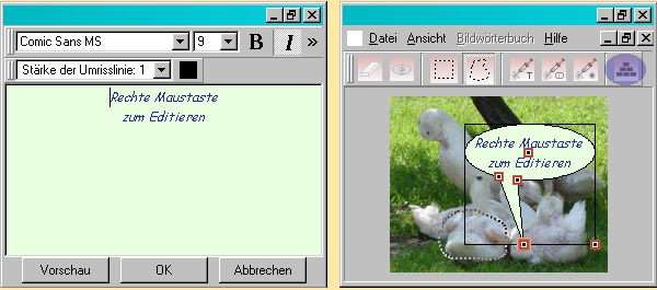 Sprechblasen zuvor ausgewählten Regionen zugeordnet. Sprechblasen können